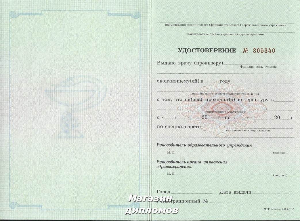 КУПИТЬ УДОСТОВЕРЕНИЕ ИНТЕРНАТУРЫ С 2005 ПО 2013 ГОД