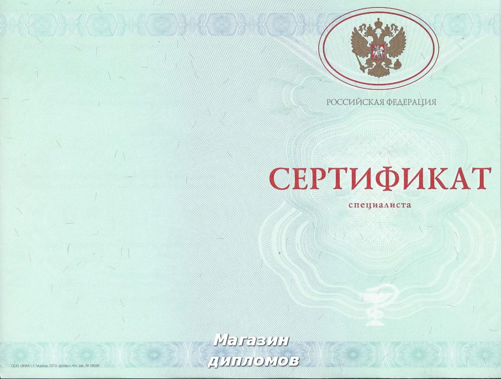 Медицинский сертификат Российской Федерации (ООО Знак, Москва 2013 год), выдавался с 2013 года по настоящее время
